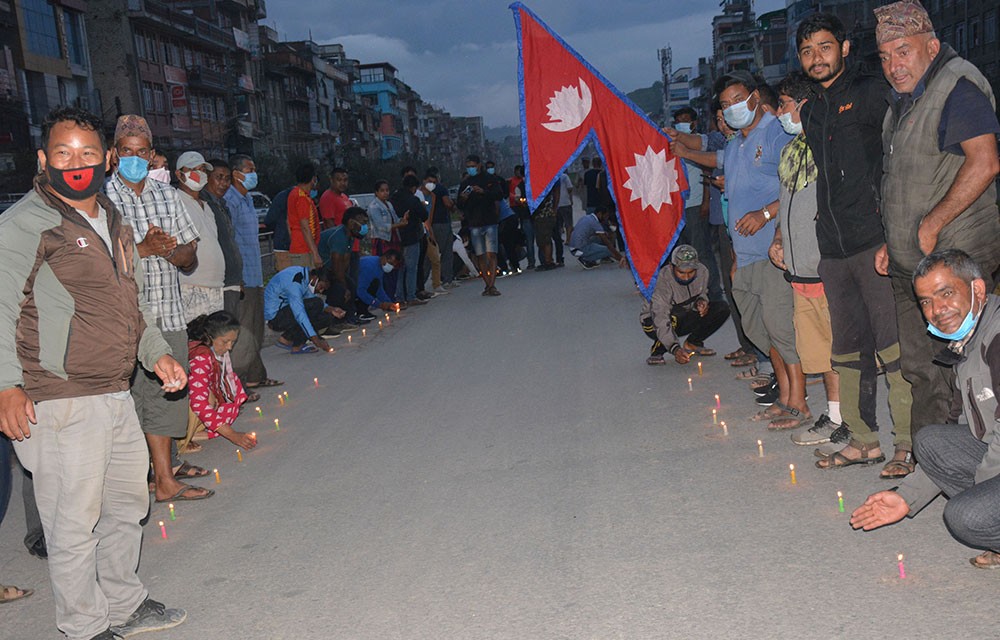 An illumination programme was organised in Banepa of Kavrepalanchok, this evening hailing the constitution amendment. The National Youth Association and the All Nepal National Free Students Union (ANNFSU), the two sister organisations of the ruling Nepal Communist Party (NCP), lit lamps on the occasion. Activists of both the organisations celebrated the day by waving national flags in jubilation at Banepa Chardobato.