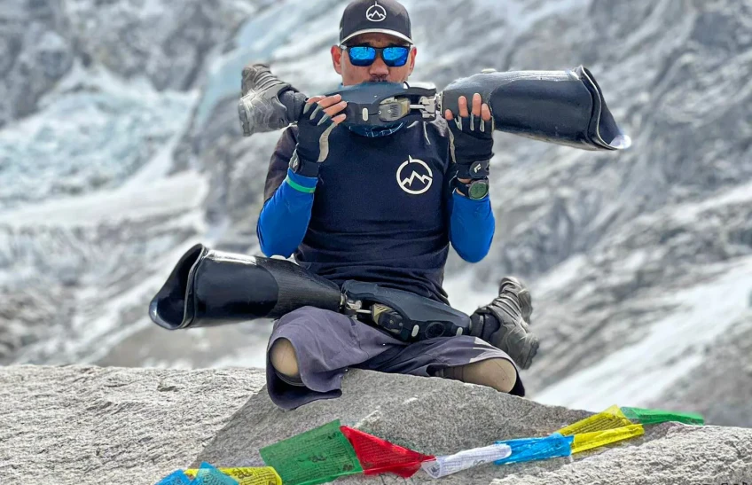 He had lost his both legs in the 2010 Afghanistan's war. He had already successfully climbed the Mont Blanc (4,810 meters), Chulu Far East (6,059 meters), Kilimanjaro (5,895) and Mera Peak (6,476)._RSS