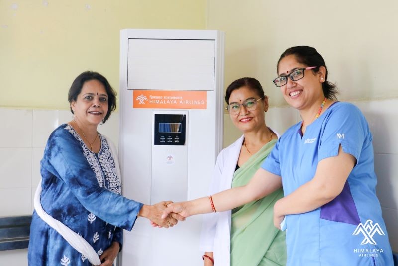 Himalaya Airlines Pvt. Ltd., a company dedicated to fulfilling its Corporate Social Responsibility (CSR) objectives, has taken a significant step towards contributing to the healthcare sector. In a handover ceremony on July 16, 2023, Mr. Zhou Enyong, President of the airlines, presented a 2-ton standing Air Conditioner to Mr. Samden Lama, Chairperson, and Dr. Kailash Kumar Bhandari, Medical Director of NDA-Nepal Orthopedic Hospital.