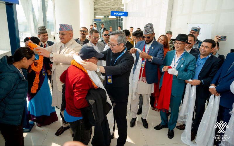 The inaugural flight event was graced by Mr. Surendra Raj Pandey, Honorable Chief Minister, Gandaki Province as the chief guest along with Mr. Arun Kumar Chaudhary, Honorable State Minister of Culture, Tourism, and Civil Aviation of Nepal, Mr. Mitra Lal Basyal, Minister of Industry and Tourism of Gandaki Province, His Excellency Mr. Chen Song, Ambassador of the People's Republic of China to Nepal, Mr. Dhana Raj Acharya, Mayor of Pokhara Metropolitan City, Mr. Deo Chandra Lal Karna, Deputy Director General, Civil Aviation Authority of Nepal, along with other dignitaries who were welcomed by Mr. Zhou Enyong, President, Mr. Vijay Shrestha, Vice President- Administration and Himalaya Airlines Officials. Consular General of Nepal in Lhasa, Laxmi Prasad Niraula also graced the historic event with his presence.