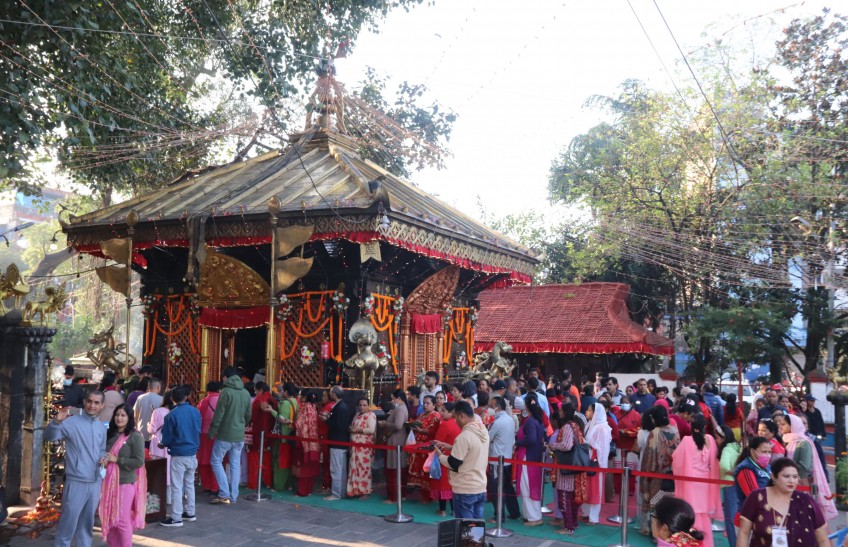 The devotees have thronged Hindu shrines across the country. In the Kathmandu Valley, devotees throng at Guheshwori, Jaya Bageshwori, Maitidevi, Kalikasthan, Naxal Bhagawati, Bhadrakali, Kalankimai, and several other temples in the early morning. Likewise, Palanchwok Bhagawati, Nala Bhagawati, Kamalamai, Ichchhakamana, Manakamana, Gadhimai, Pathibhara, Dantakali, Baglung Kalika, Bindhabasini, Tal Barahi, and other shrines have also received a large number of devotees on the sixth day of the Bada Dashain today._Rss