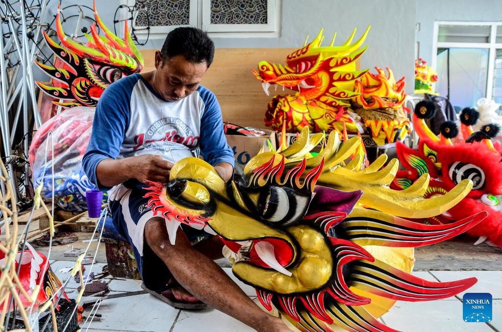 Traditional lion heads are being made for the upcoming Chinese New Year festivities in Bogor, Indonesia.