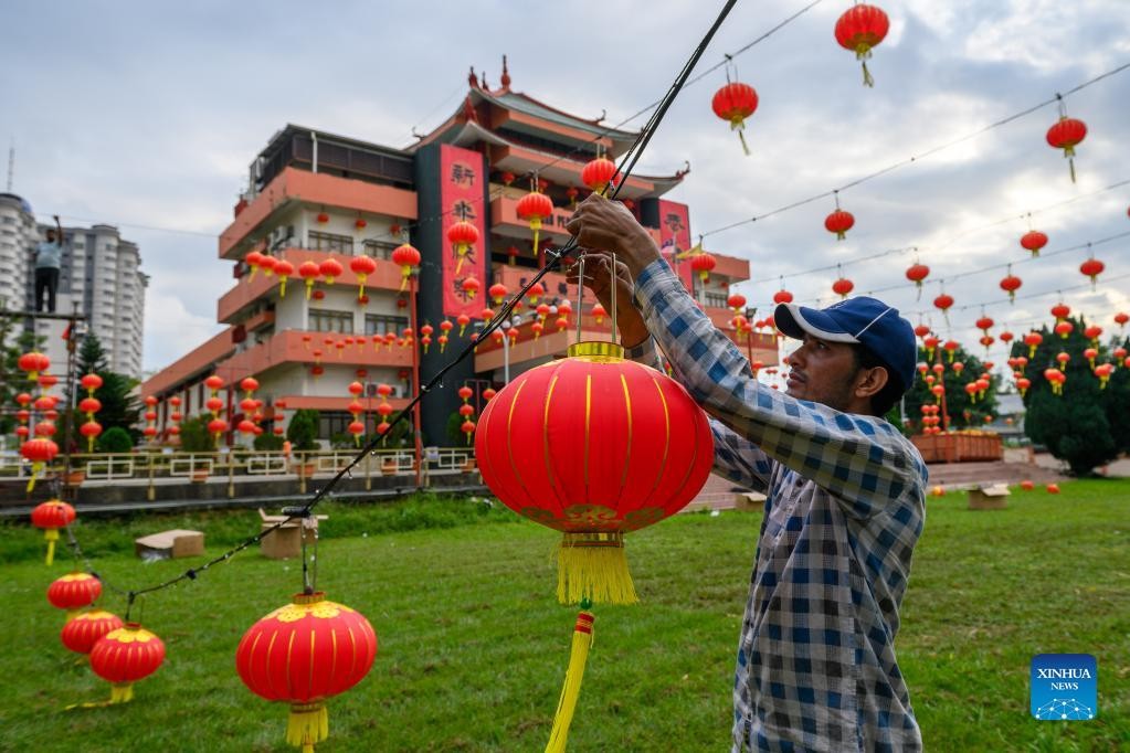 Lanterns being hung for the upcoming Spring Festival in Klang of Selangor states, Malaysia.