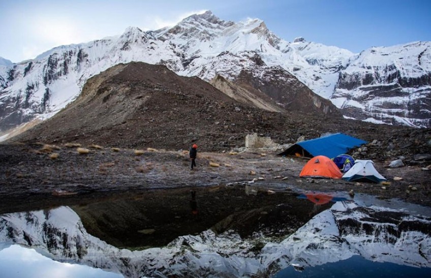 In a remarkable turn of events, tourists have begun flocking to the 'North' base camp of Annapurna, situated in the breathtaking locale of Narchang within Annapurna Rural Municipality-4 of Myagdi, Sharadyam region.