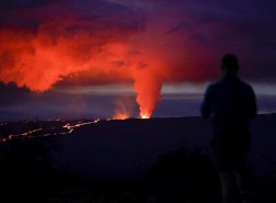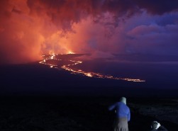 Thousands of visitors were drawn to the world’s largest volcano, which oozed rivers of glowing lava