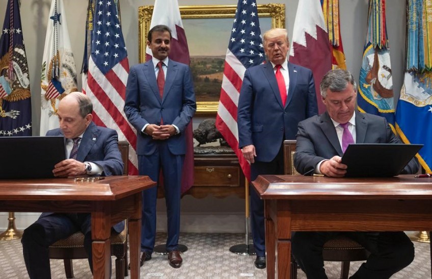 The signing ceremony commenced in the presence of His Highness Sheikh Tamim Bin Hamad Al-Thani, Amir of the State of Qatar and U.S. President Donald Trump.