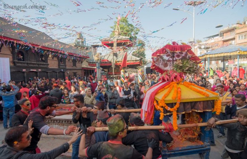 On the morning of Krishna Tritiya, the procession ends at the Amalkot Court after offering to Shri Chandra Vinayak and Shri Bhairavnath. To celebrate the successful completion of the four-day Jatra, Sindur Jatra is performed in the Chavahil area throughout the day on the third day. The Chandra Vinayak temple has been closed since April last year due to Corona. Reconstruction of the temple damaged by the earthquake on April 29, 2072 BS has reached the final stage. Chairman of Kathmandu Metropolitan City-7 Shuddha Kumar Dangol informed that the reconstruction of the temple will be completed in a month. It is said that preparations have been made to open the temple by maintaining physical distance and adopting health protection method after the completion of the reconstruction.