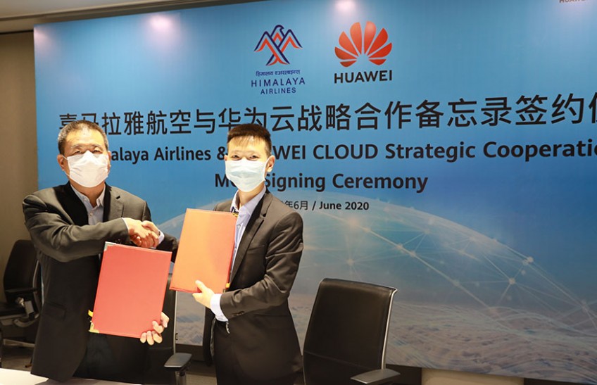 Himalaya Airlines and Huawei Cloud, Chinese multinational technology company, signed a memorandum of understanding for strategic cooperation yesterday, Jun 28, 2020 during a signing ceremony held at Huawei company office in Kathmandu.