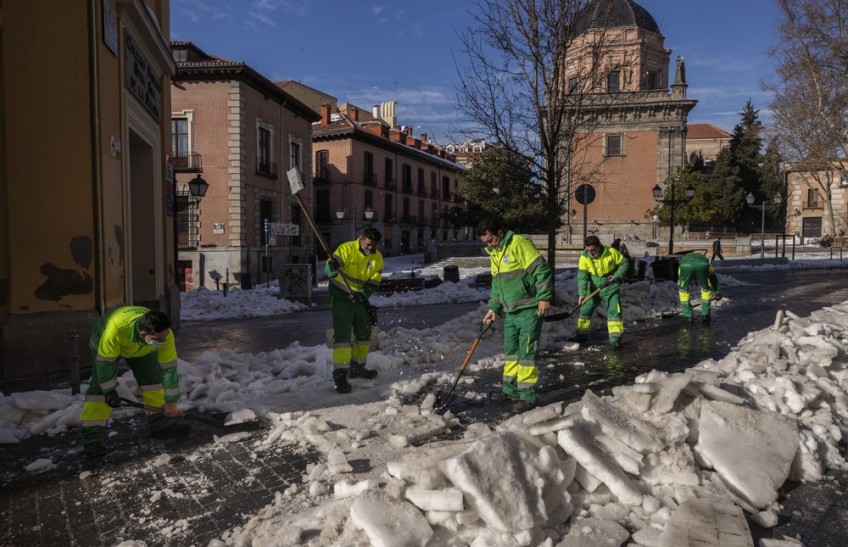 With piles of ice and snow still covering most streets of Madrid, the Spanish capital began Thursday grappling with the problem of garbage piled in the streets and tens of thousands of trees and branches blocking the pavement less than a week after Storm Filomena.