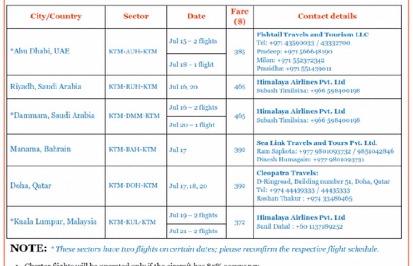 The notice issued by Himalaya Airlines includes specific details related to date, sector, fares and contact agents, etc, to avoid any lapses in communication.