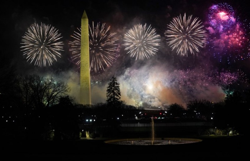 Fireworks lit up the sky behind the Washington Monument to mark the end of Inauguration Day for President Joe Biden.