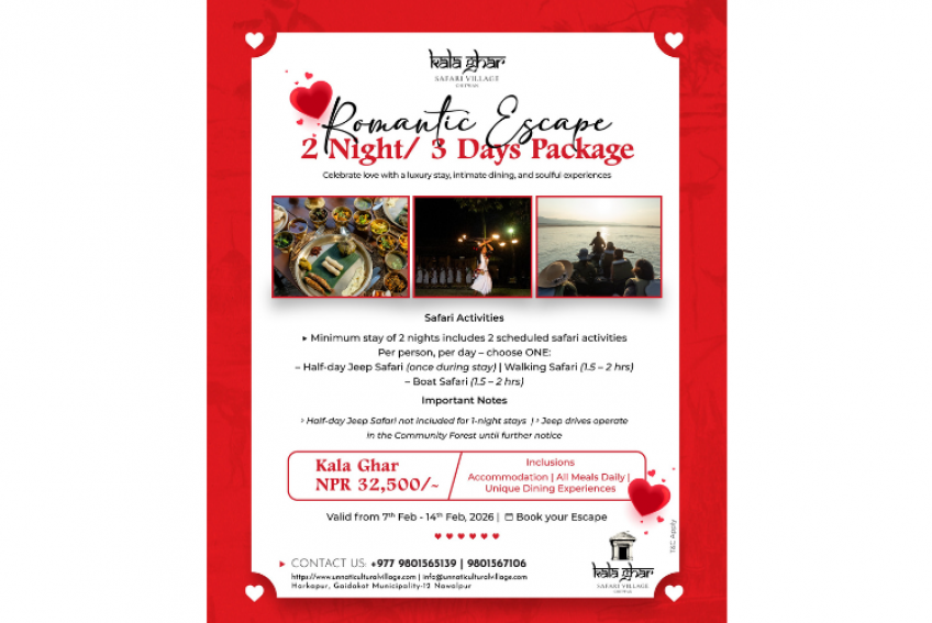 Set in the heart of Chitwan, Kala Ghar Safari Village invites couples to celebrate love with luxury stays, soulful dining, and immersive safari experiences.