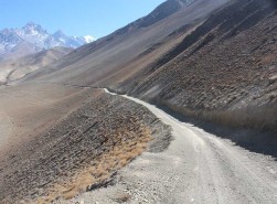 Travellers have to make risky crossings of landslides in several places along the Beni-Jomsom road