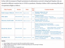 Himalaya Airlines has shared the details of repatriation flights from August 16, 2o2o to August 30, 2020