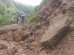 Beshishahar-Chame road, which was disrupted a week back due to landslide, has not resumed yet