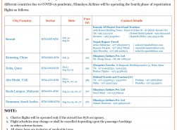 Himalaya Airlines has shared the details of repatriation flights from July 30 to August 7, 2020